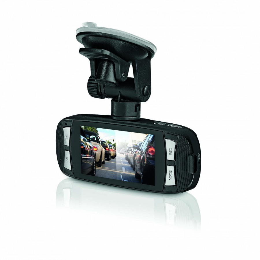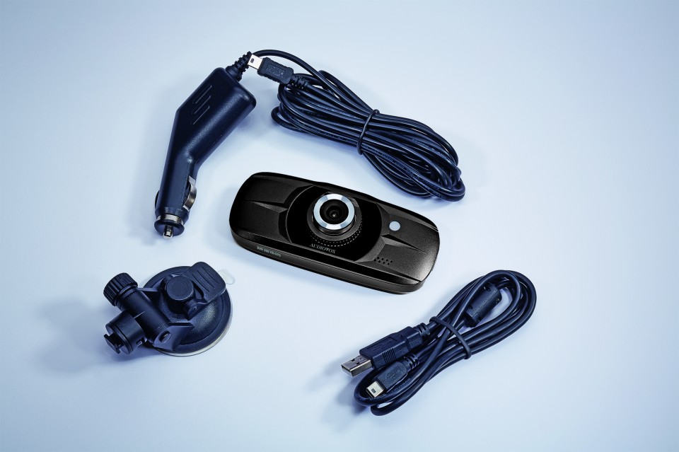 Gate Bridge or travelling through the Rocky Mountains - the brand new Audiovox Dashcam DVR 300 HD-GPS can capture any scenic or exciting car journey in Full HD on a microSD card with a capacity of up to 32 GB (1080p/30 frames per second). The compact, high performance camera can be securely attached to the car‘s windscreen via a suction cup.Its 140 degree wide angle lens enables high-resolution recordings. In addition, it is also possible to take individual photos while recording your video. Full control is provided via the 2.7 inch monitor at the rear of the camera.